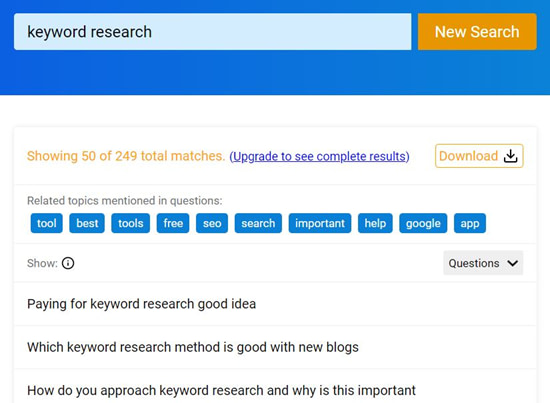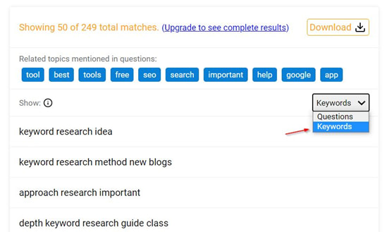 Also, you won’t get the complete list of related keywords unless you upgrade.