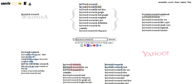 Soovle is a free online keyword research tool that extracts tons of keywords from all around the internet, be it Google, Yahoo, Bing, or YouTube.