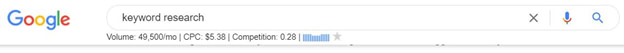 It gives you the monthly search volume and cost-per-click (CPC) of your Google search query.