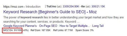 As discussed earlier, you can use the MozBar extension to identify low-DA sites on the first page.