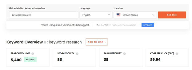 Ubersuggest is one of the most popular freemium keyword research tools in the market.